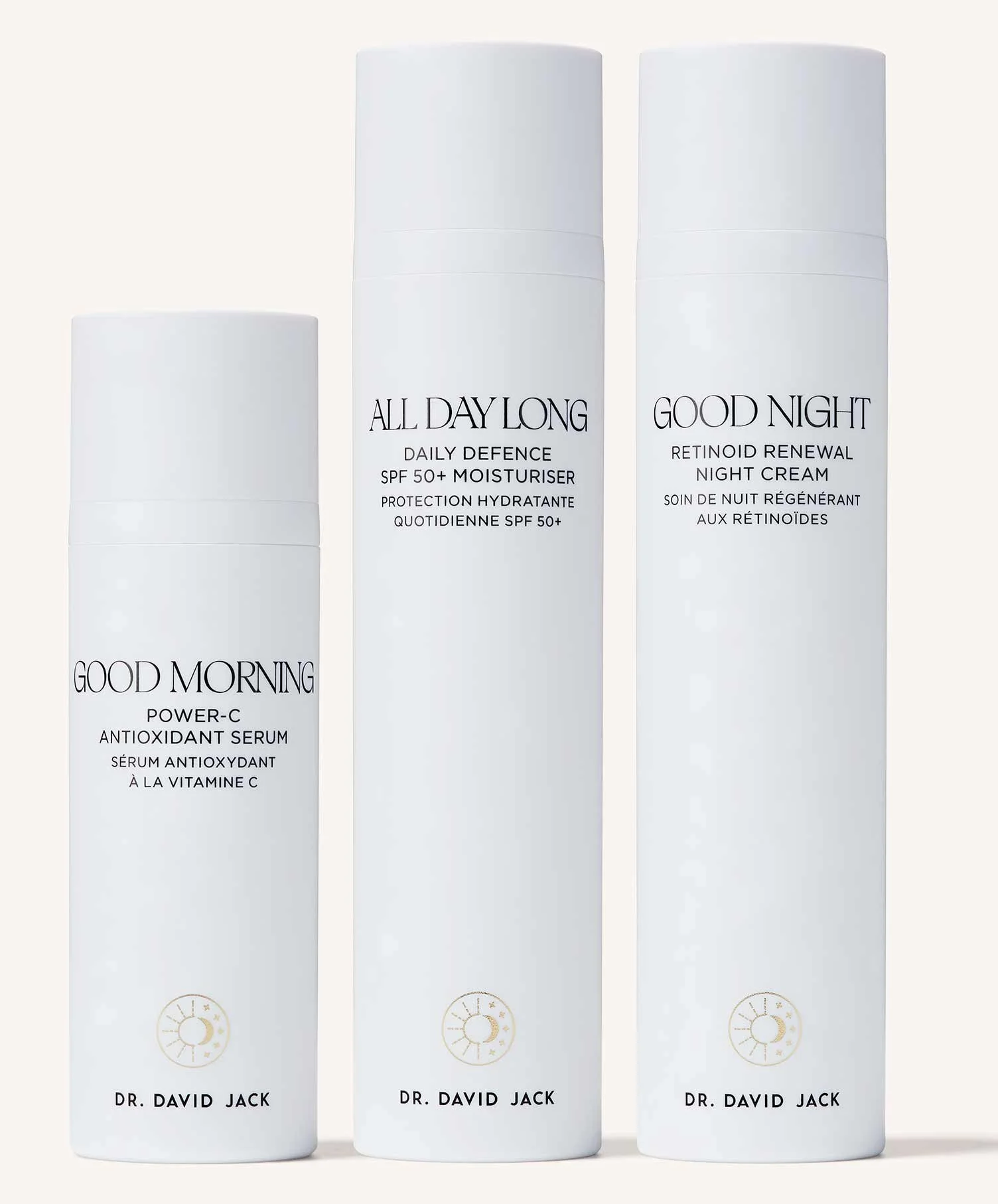 Reviewing the products that I actually use and love, the list isn’t endless, it’s not glamorous and it’s certainly not complicated. For me, my skincare routine is regimented and most importantly it’s basic. Most days I skip the eye cream and the lip mask, so I’m only really cleansing my face and using the Dr. David Jack trio, some hydration and some lip balm.