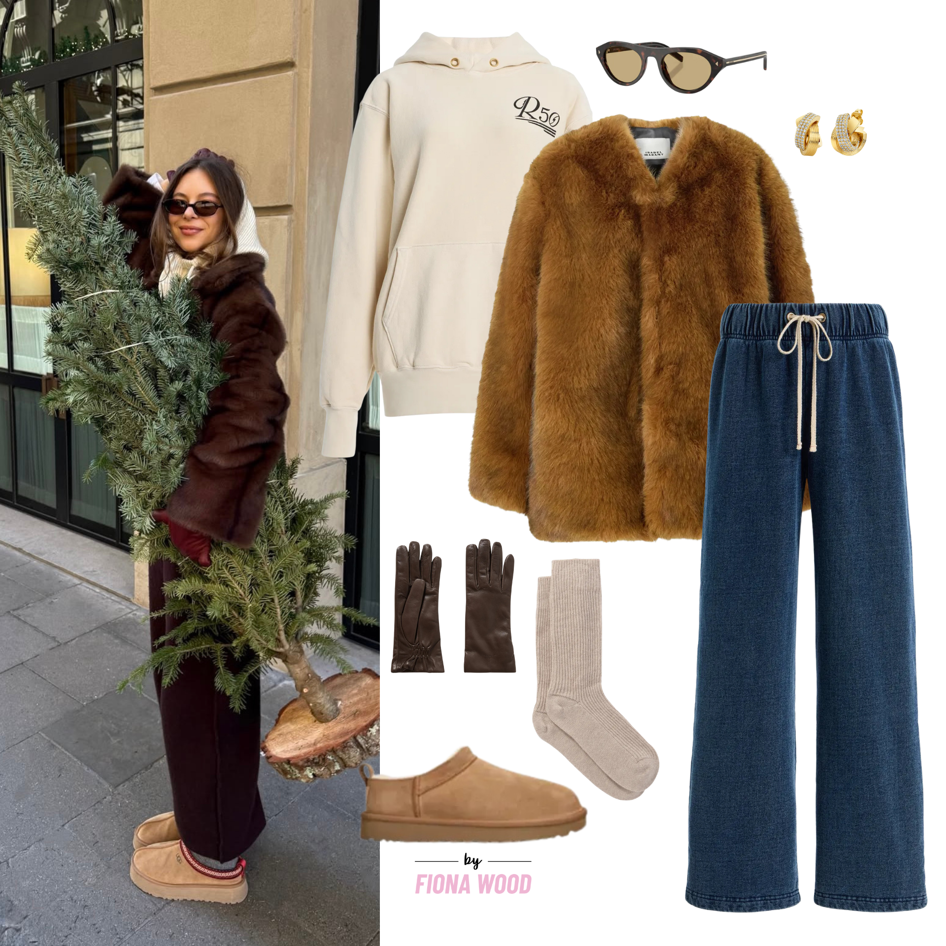 This is a real ‘me’ get up, with a pair of Les Tien track bottoms and a good hoodie (this one is the Les Tien x Raoul collaboration, teamed with a pair of UGGs that I use as house shoes at the moment, cashmere socks and a cool Isabel Marant Coat to round off the casual get up nicely. The gloves are Toteme and the earrings are Sydney Evan with a pair of Prada glasses, you cannot go wrong with now, or for the transitional Season into Spring.